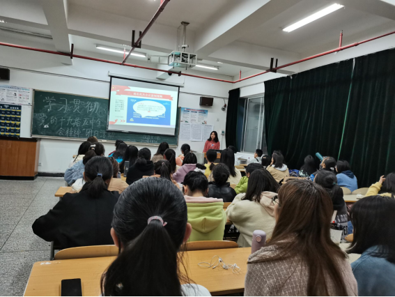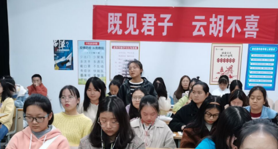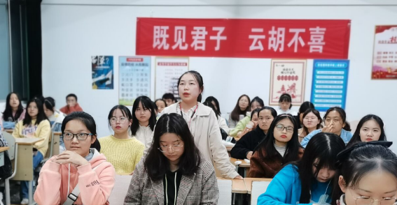 在团日活动中,B理1班的班主任罗忆老师为同学们讲解爱国精神并带领大家学习,他向同学们深情地说道:“同学们,我们可能不像抗日战士那样轰轰烈烈,也不能有袁隆平那样伟大,但是,我们可以为祖国的利益付出,我们可以坚守着自己的岗位,做好我们的本职工作。作为学生,我们就要努力读书,好好学习,天天向上。”
