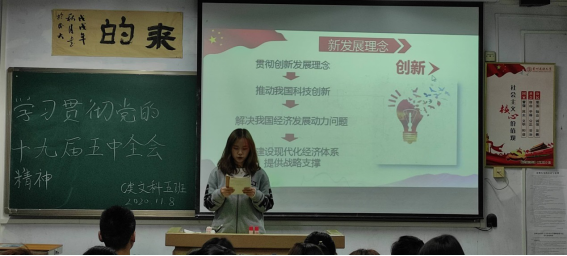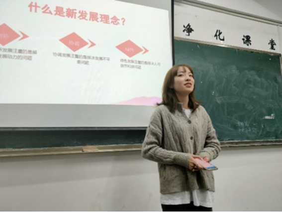 在深入了解新发展理念、理解创新发展理念时,C文5班的冯同学说:“创新是当今经济发展的重要动力支撑,只有创新,才能紧紧地跟上时代发展契机,才能站在科技发展前端,才能为我国发展增添动力。”